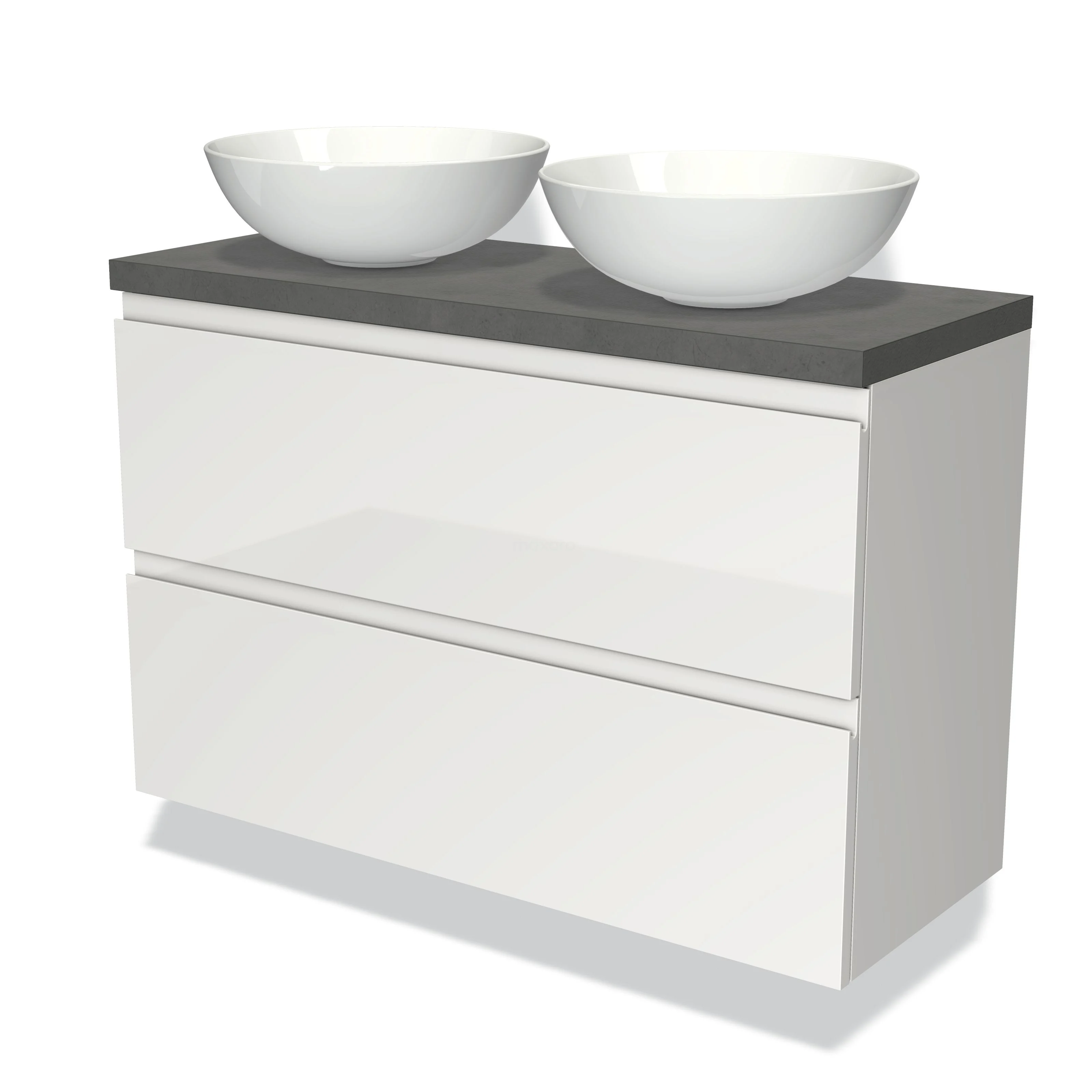 Waschtischunterschrank mit Konsole 100cm Modulo Plato Slim Hochglanz Weiß 2 Schubladen Grifflos