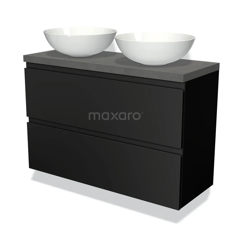 Waschtischunterschrank mit Konsole 100cm Modulo Plato Slim Matt Schwarz 2 Schubladen Grifflos