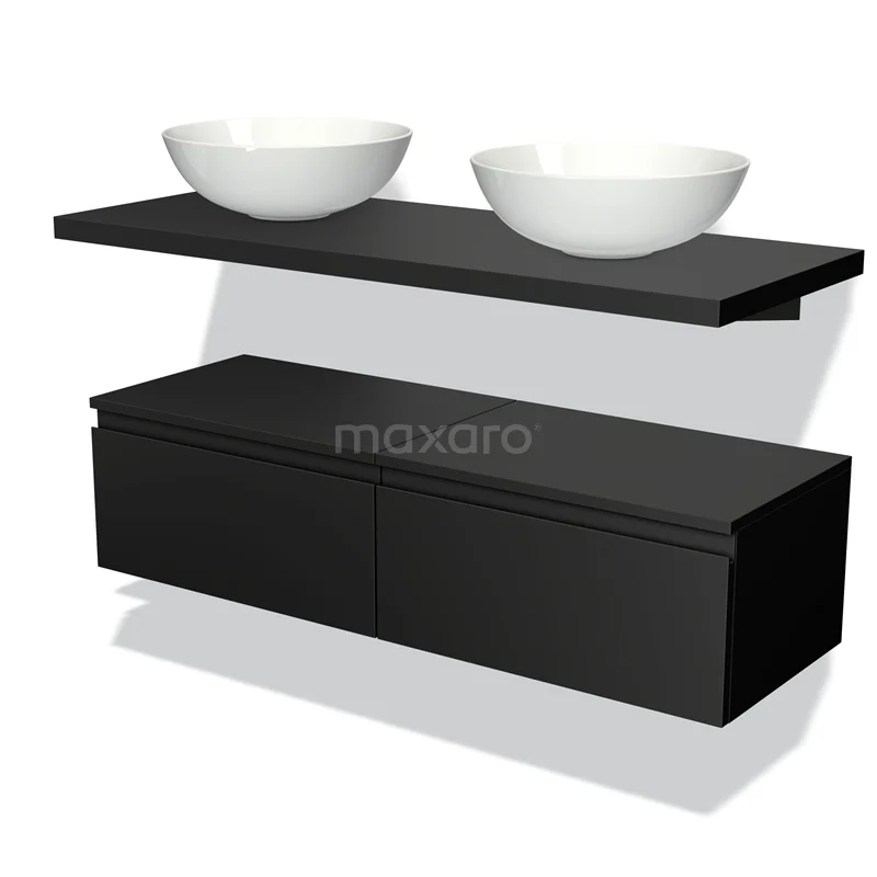 Waschtischunterschrank mit Konsole 120 cm Modulo Plato Matt Schwarz 2 Schubladen Grifflos