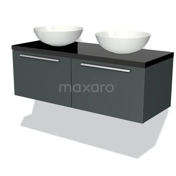 Waschtischunterschrank mit Konsole 120cm Modulo Plato Hochglanz Schwarz 2 Schubladen Flach