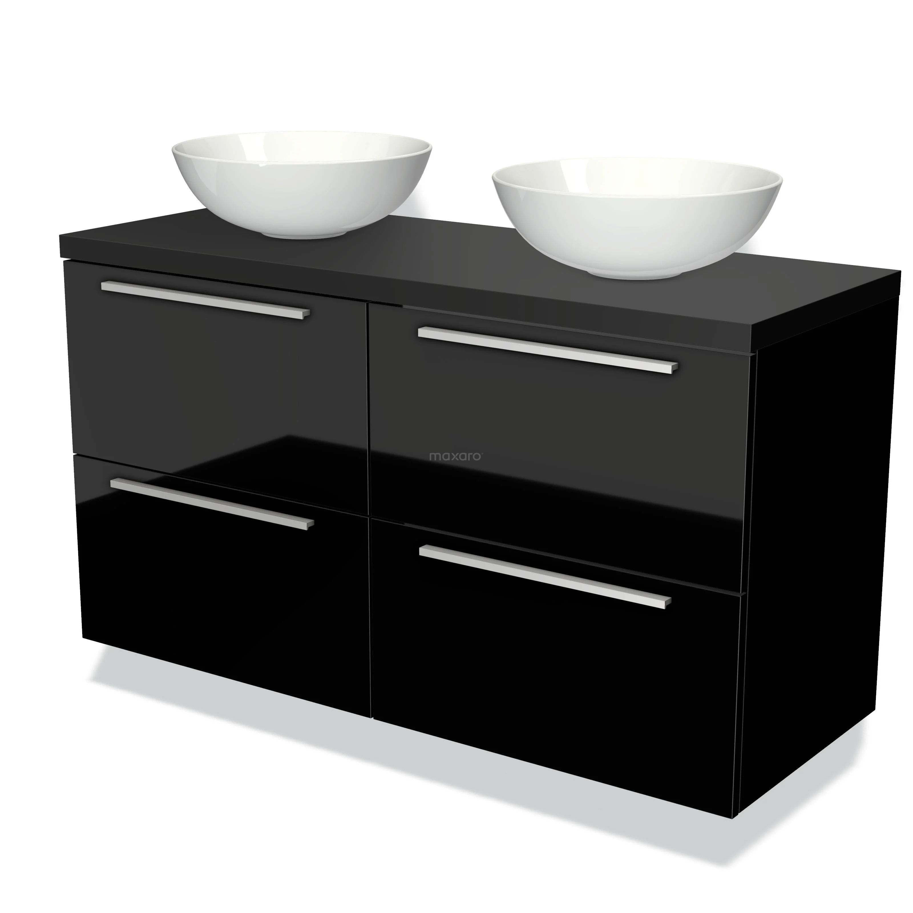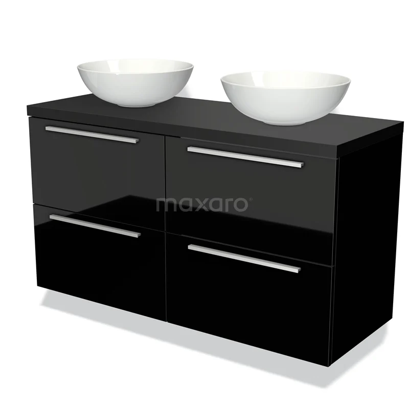 Waschtischunterschrank mit Konsole 120cm Modulo Plato Hochglanz Schwarz 4 Schubladen Flach Matt Schwarz Platte