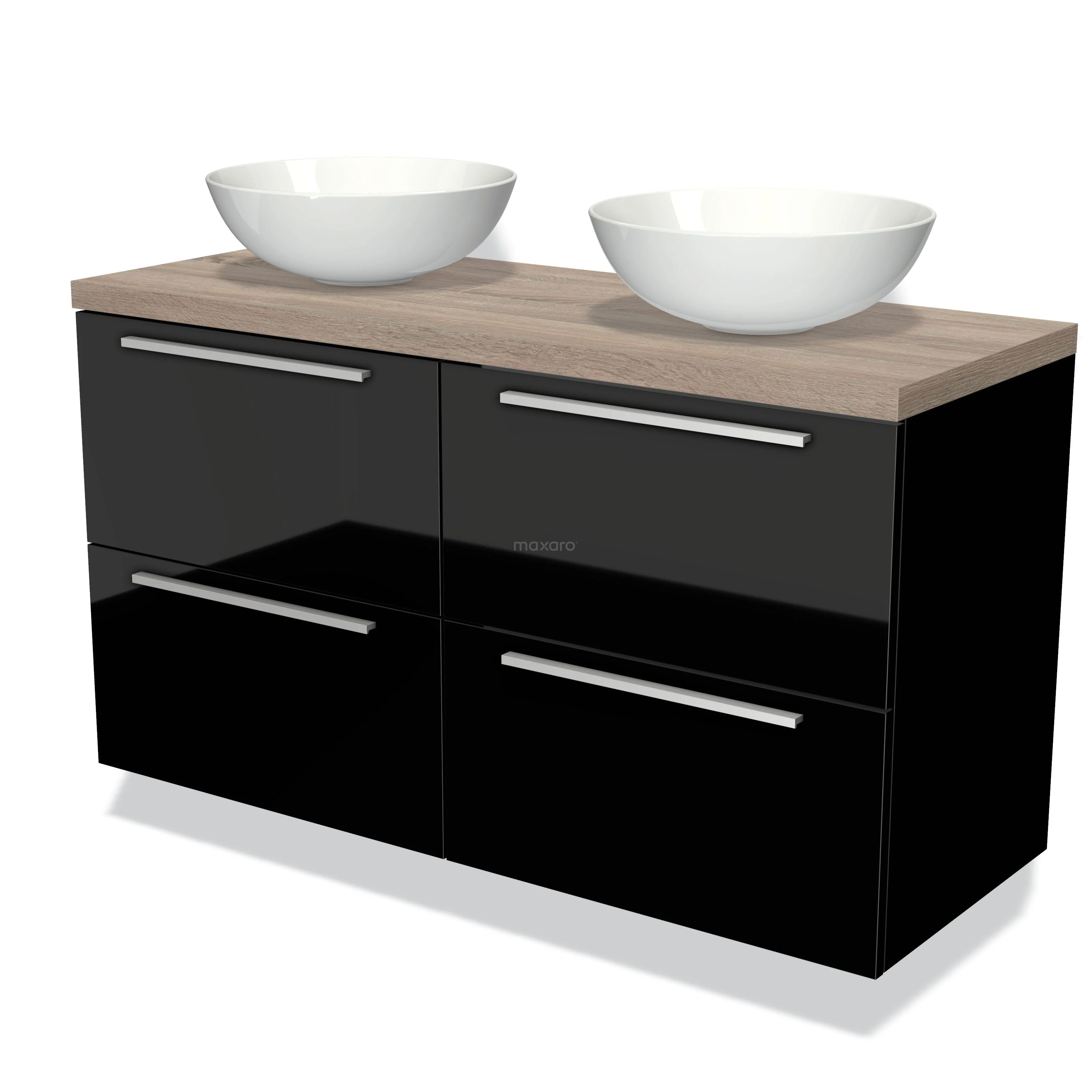 Waschtischunterschrank mit Konsole 120cm Modulo Plato Hochglanz Schwarz 4 Schubladen Flache Eiche Platte