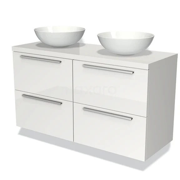 Waschtischunterschrank mit Konsole 120cm Modulo Plato Hochglanz Weiß 4 Schubladen Flach