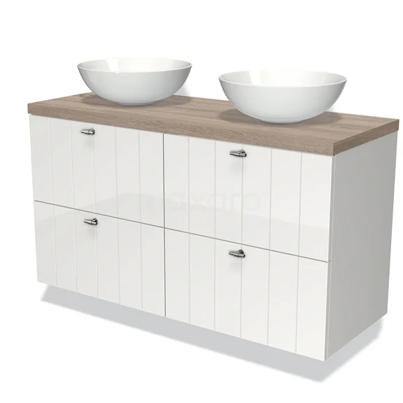 Waschtischunterschrank mit Konsole 120cm Modulo Plato Hochglanz Weiß 4 Schubladen Lamelle Eiche Platte