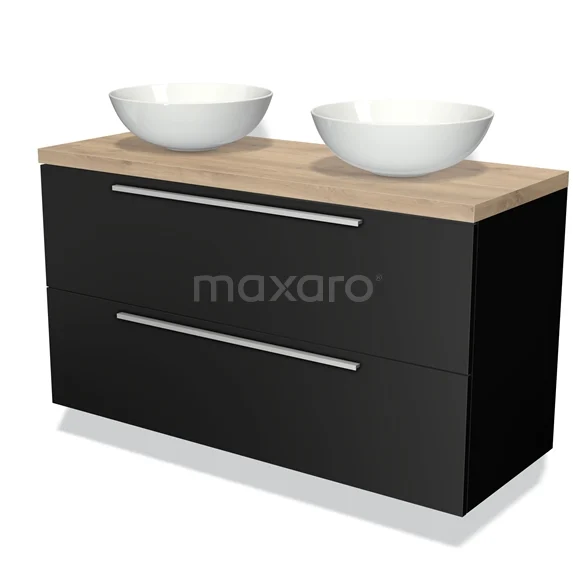 Waschtischunterschrank mit Konsole 120cm Modulo Plato Matt Schwarz 2 Schubladen Flach Hellbraune Eiche Platte