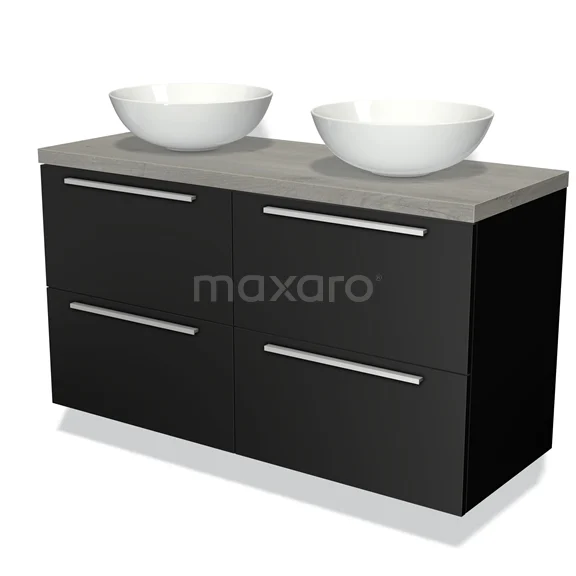 Waschtischunterschrank mit Konsole 120cm Modulo Plato Matt Schwarz 4 Schubladen Flach Graue Eiche Platte