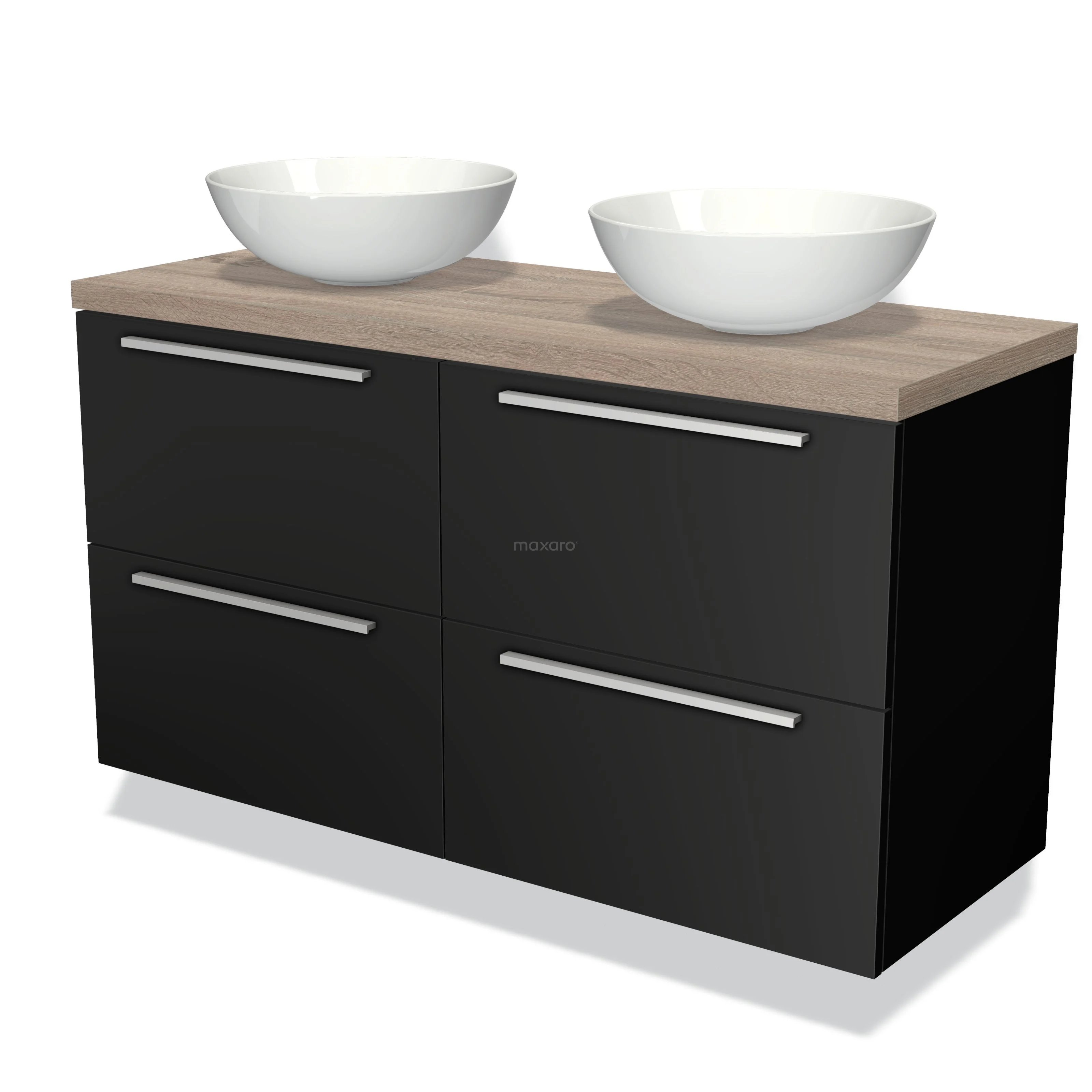 Waschtischunterschrank mit Konsole 120cm Modulo Plato Matt Schwarz 4 Schubladen Flache Platte aus Eiche