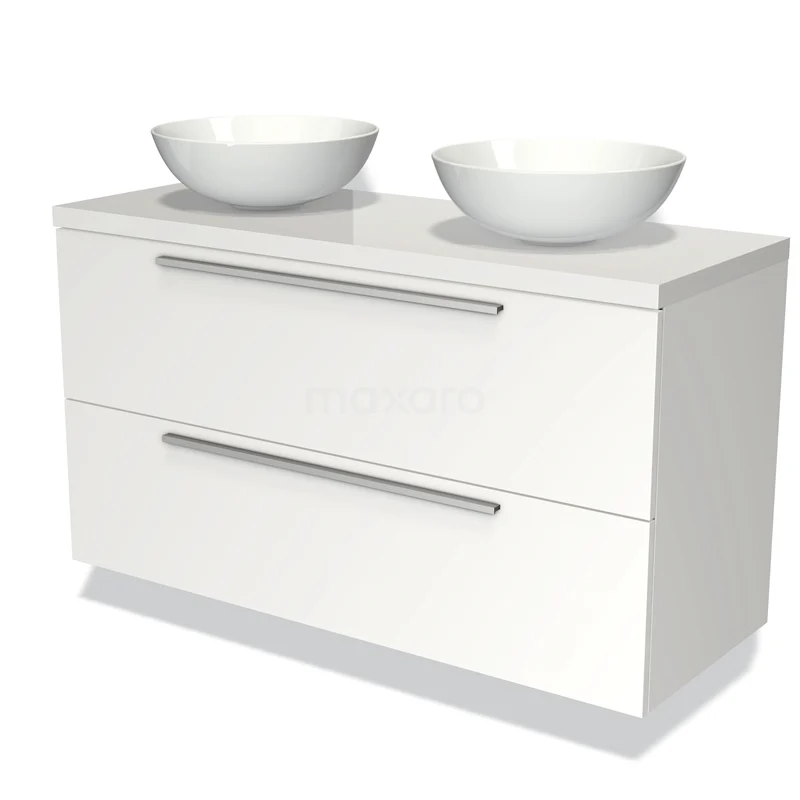 Waschtischunterschrank mit Konsole 120cm Modulo Plato Matt Weiß 2 Schubladen Flach Hochglanz Weiß Platte