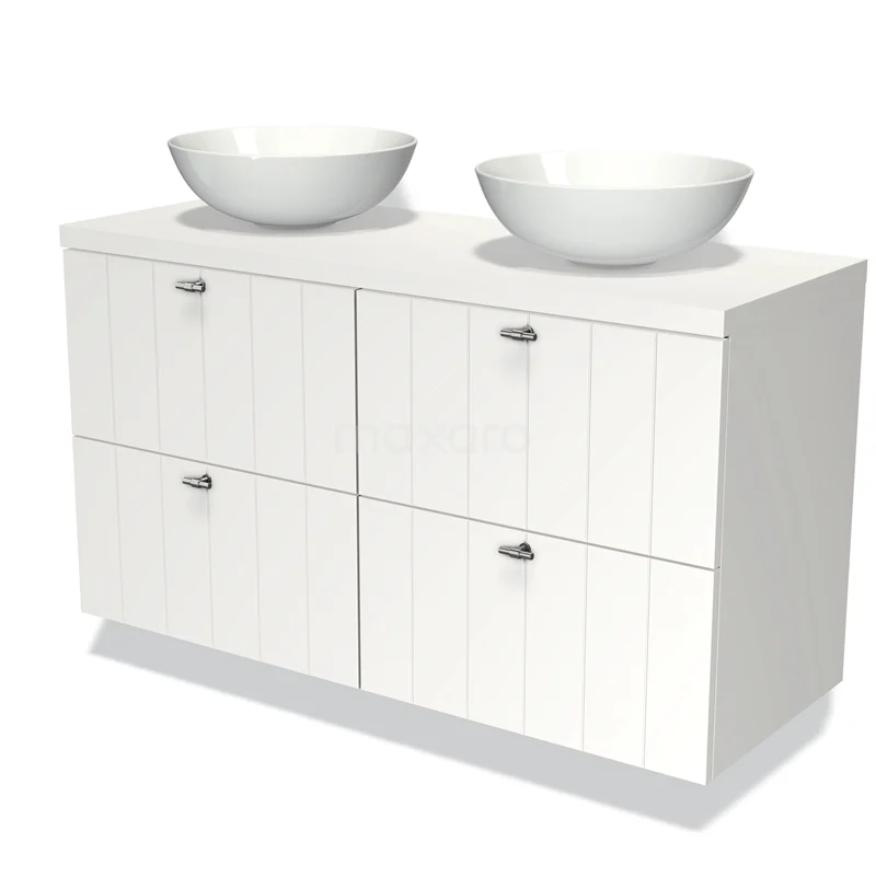 Waschtischunterschrank mit Konsole 120cm Modulo Plato Matt Weiß 4 Schubladen Lamelle