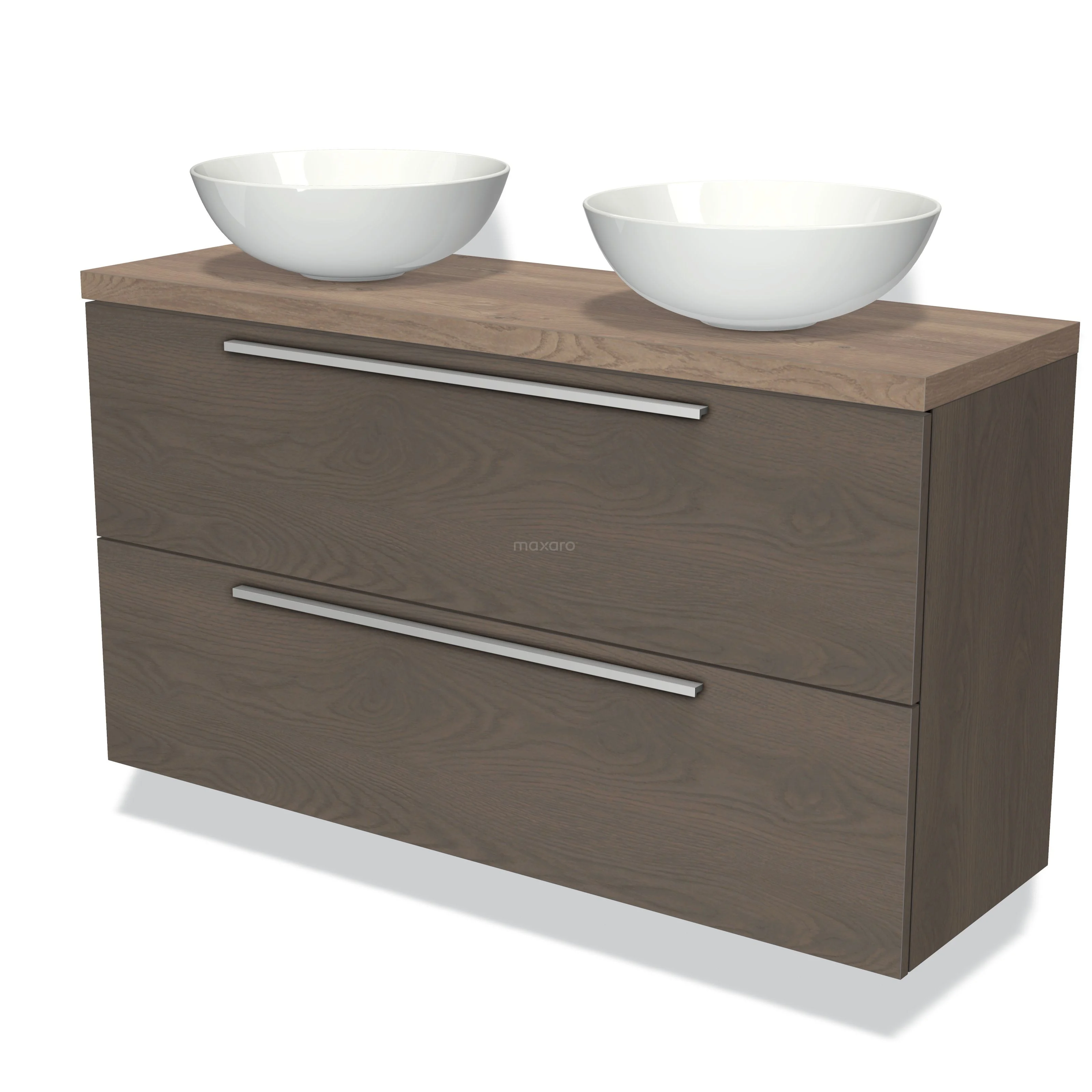 Waschtischunterschrank mit Konsole 120cm Modulo Plato Slim dunkelbraune Eiche 2 Schubladen Flach