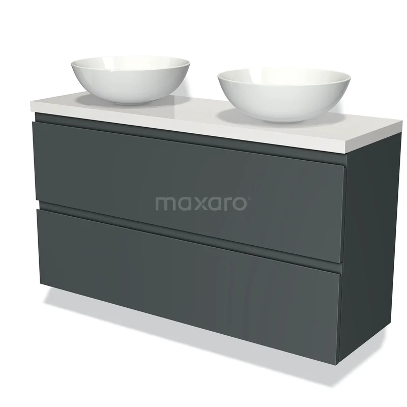 Waschtischunterschrank mit Konsole 120cm Modulo Plato Slim Dunkelgrau 2 Schubladen Grifflos