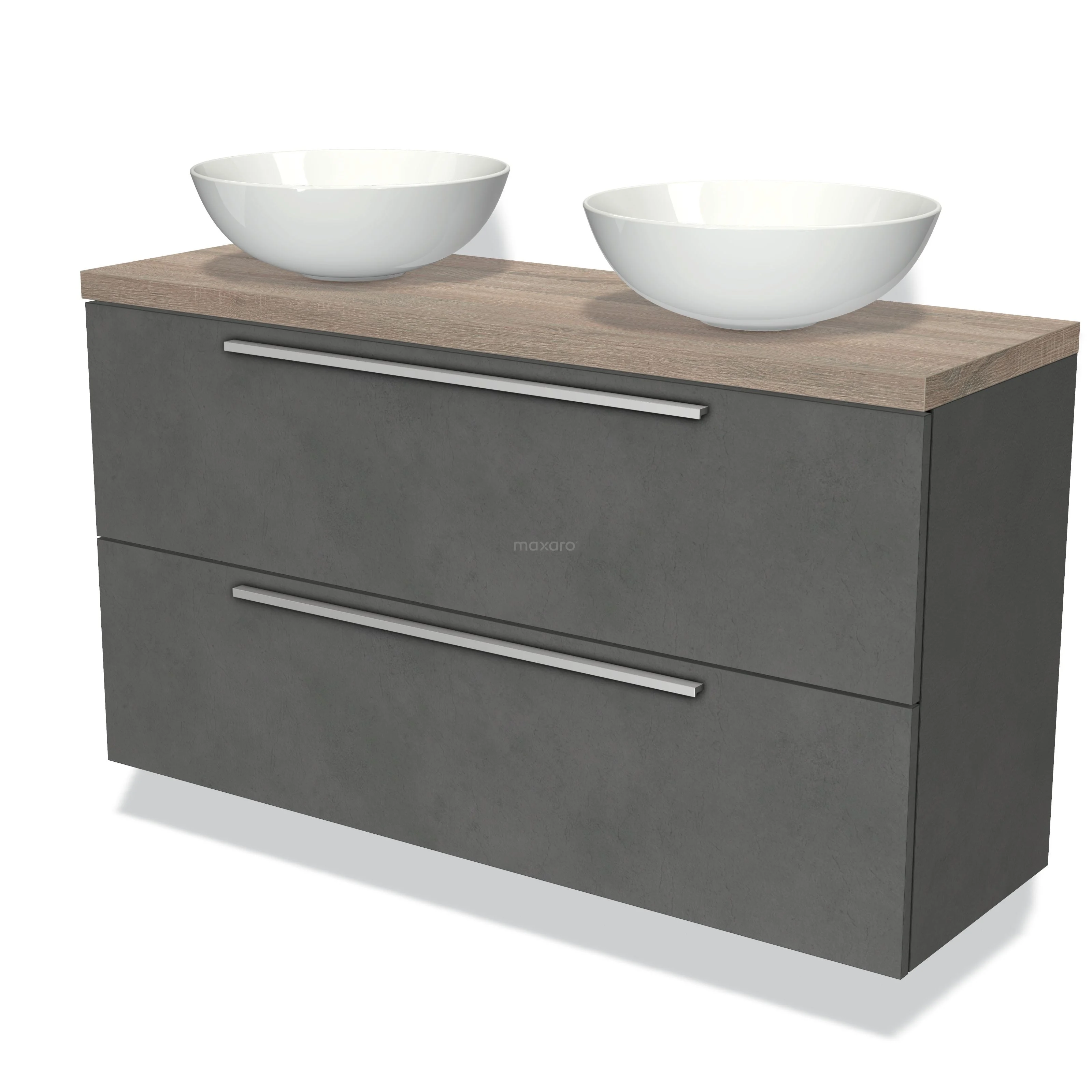 Waschtischunterschrank mit Konsole 120cm Modulo Plato Slim Dunkelgrau Beton 2 Schubladen Flach