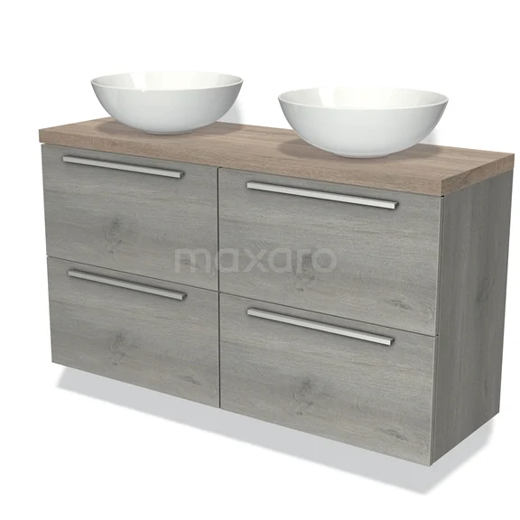 Waschtischunterschrank mit Konsole 120cm Modulo Plato Slim Grau Eiche 4 Schubladen Flache Platte Eiche