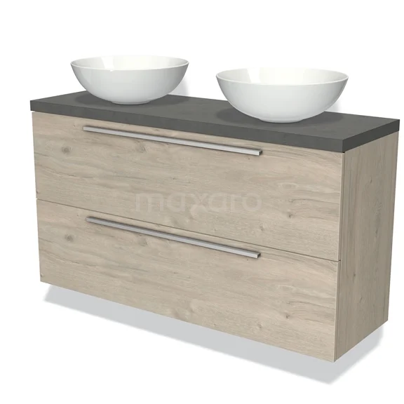 Waschtischunterschrank mit Konsole 120cm Modulo Plato Slim Hellgraue Eiche 2 Schubladen Flach