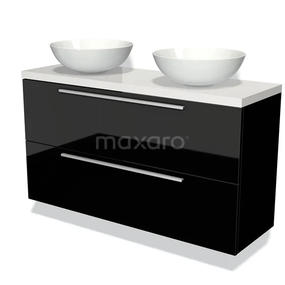 Waschtischunterschrank mit Konsole 120cm Modulo Plato Slim Hochglanz Schwarz 2 Schubladen Flach