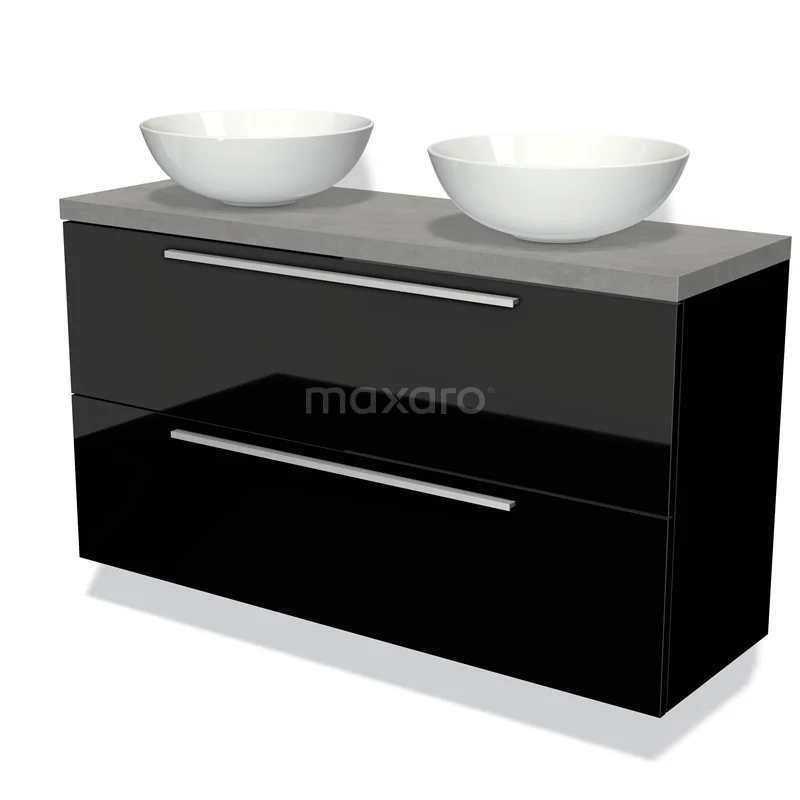 Waschtischunterschrank mit Konsole 120cm Modulo Plato Slim Hochglanz Schwarz 2 Schubladen Flach