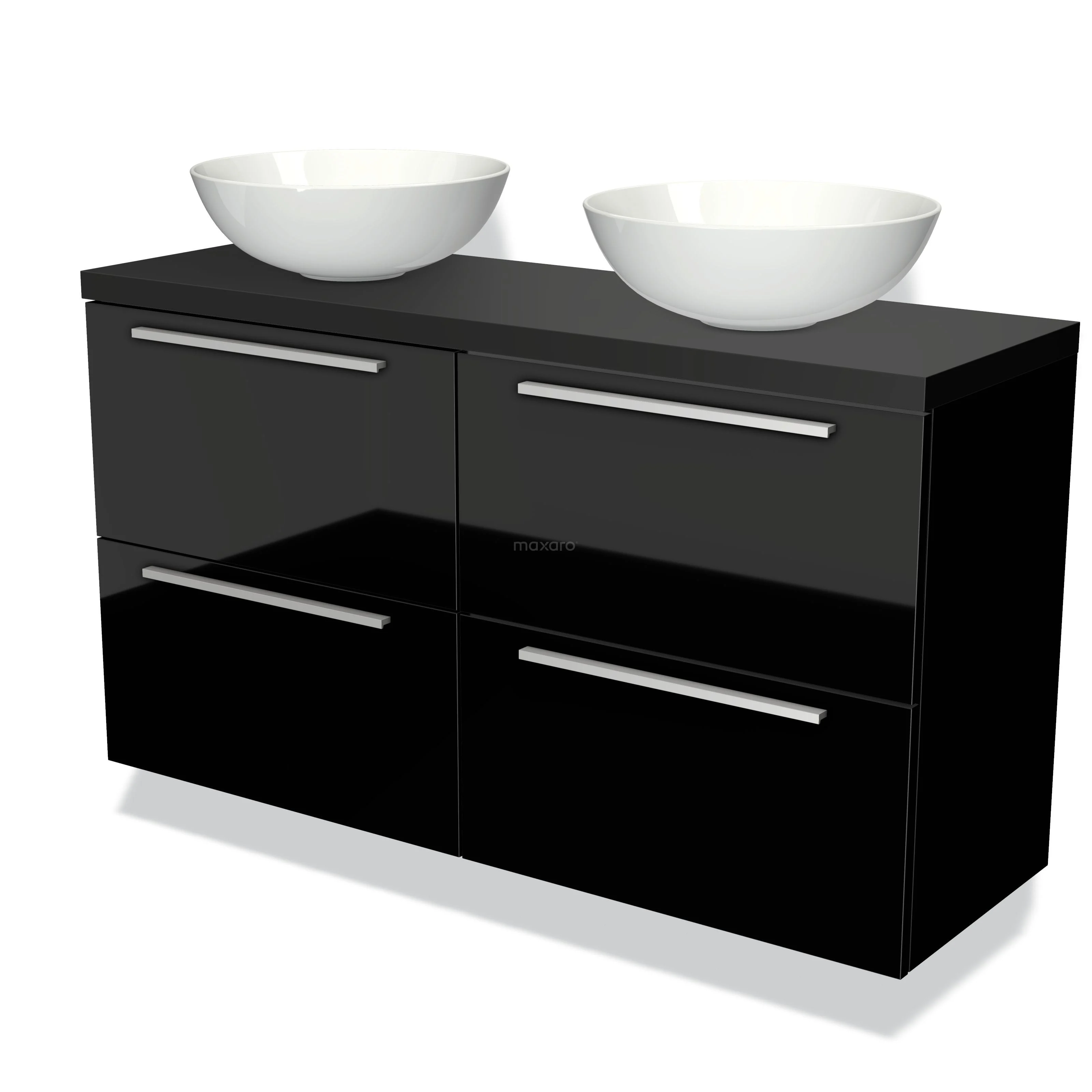 Waschtischunterschrank mit Konsole 120cm Modulo Plato Slim Hochglanz Schwarz 4 Schubladen Flach Matt Schwarz Platte