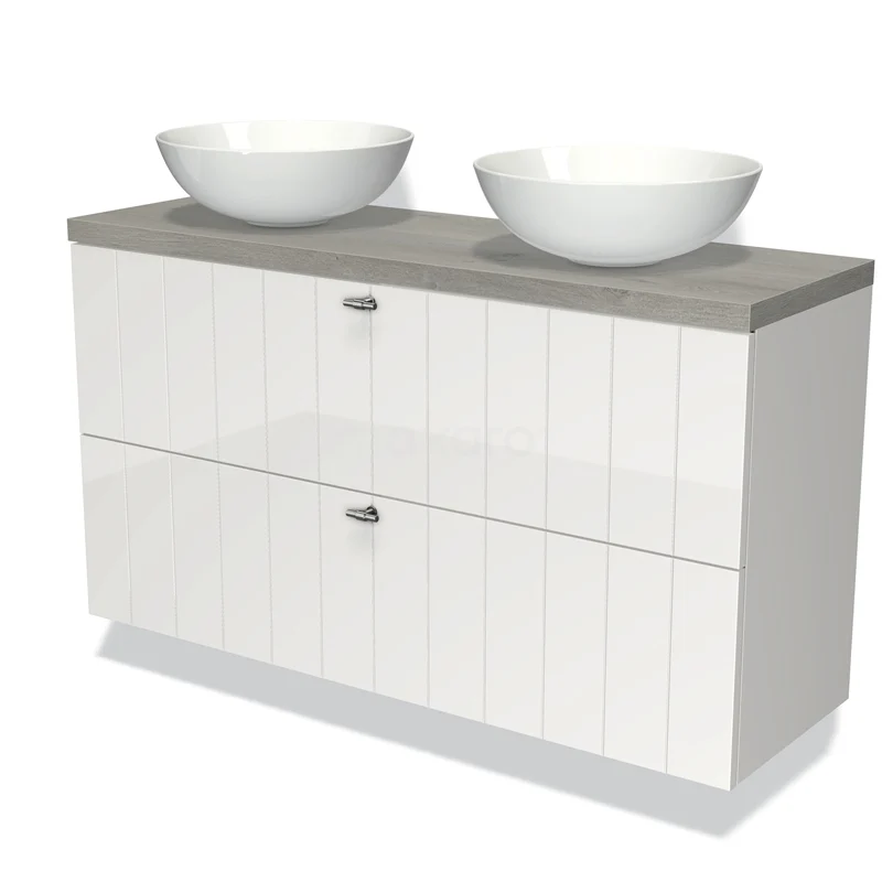 Waschtischunterschrank mit Konsole 120cm Modulo Plato Slim Hochglanz Weiß 2 Schubladen Laminat