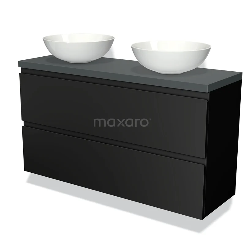 Waschtischunterschrank mit Konsole 120cm Modulo Plato Slim Matt Schwarz 2 Schubladen Grifflos