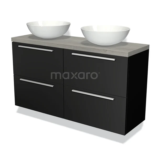 Waschtischunterschrank mit Konsole 120cm Modulo Plato Slim Matt Schwarz 4 Schubladen Flach Graue Eiche Platte