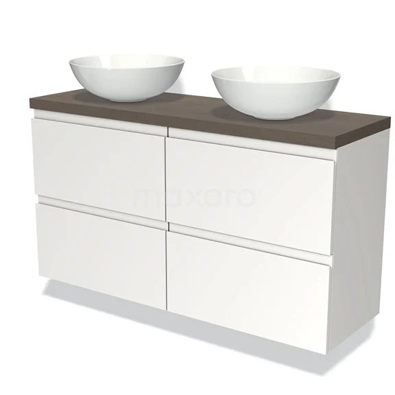 Waschtischunterschrank mit Konsole 120cm Modulo Plato Slim Matt Weiß 4 Schubladen Grifflos dunkelbraune Eiche Platte