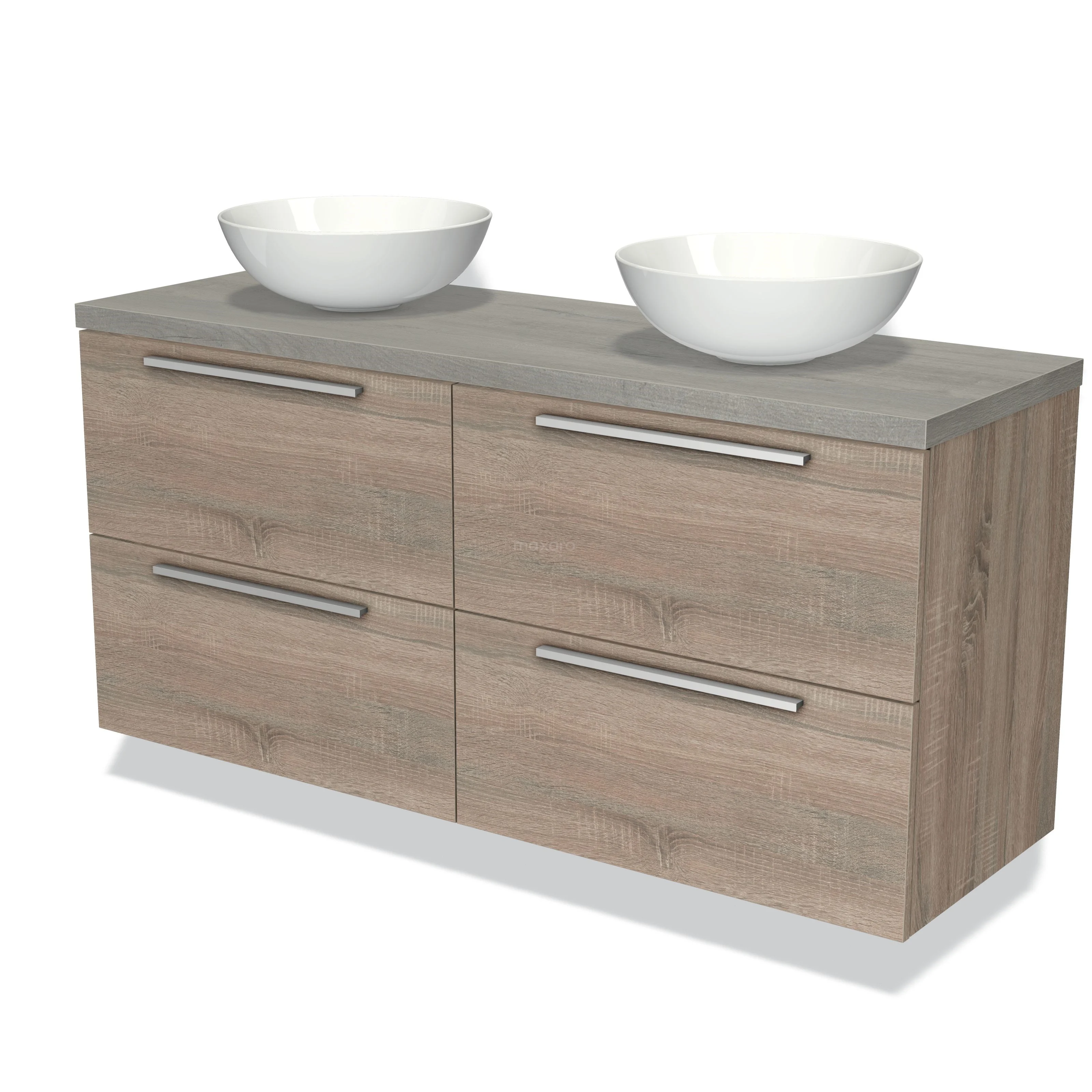 Waschtischunterschrank mit Konsole 140cm Modulo Plato Eiche 4 Schubladen Flache Platte aus grauer Eiche
