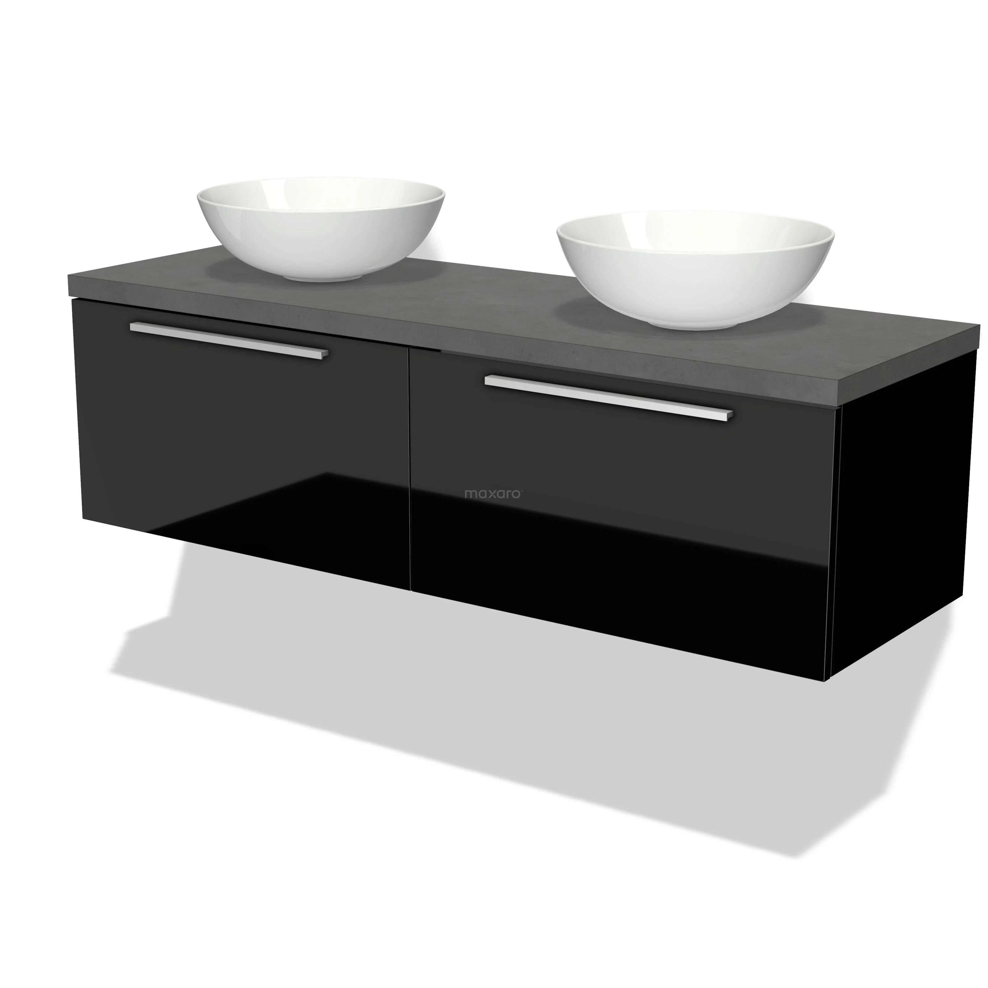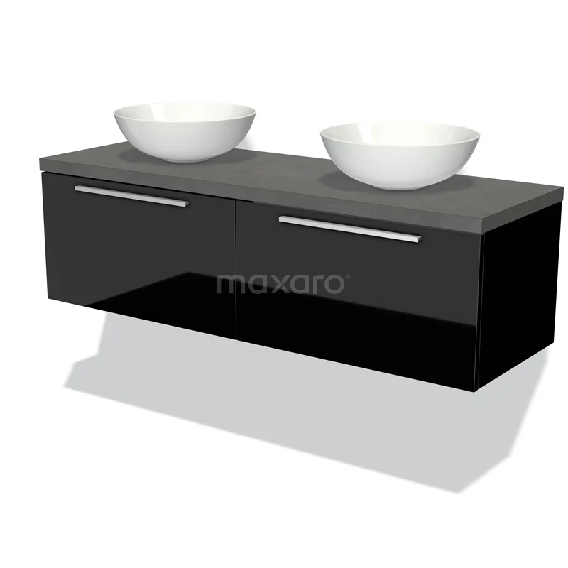 Waschtischunterschrank mit Konsole 140cm Modulo Plato Hochglanz Schwarz 2 Schubladen Flach Dunkelgrau Beton Platte