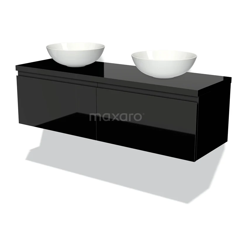 Waschtischunterschrank mit Konsole 140cm Modulo Plato Hochglanz Schwarz 2 Schubladen Grifflos