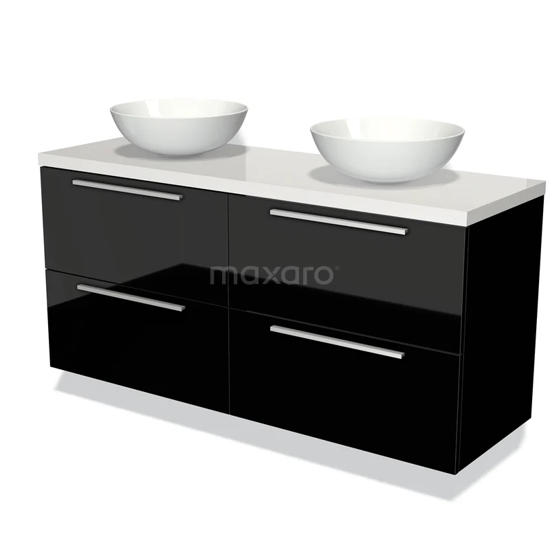 Waschtischunterschrank mit Konsole 140cm Modulo Plato Hochglanz Schwarz 4 Schubladen Flach Hochglanz Weiß Platte