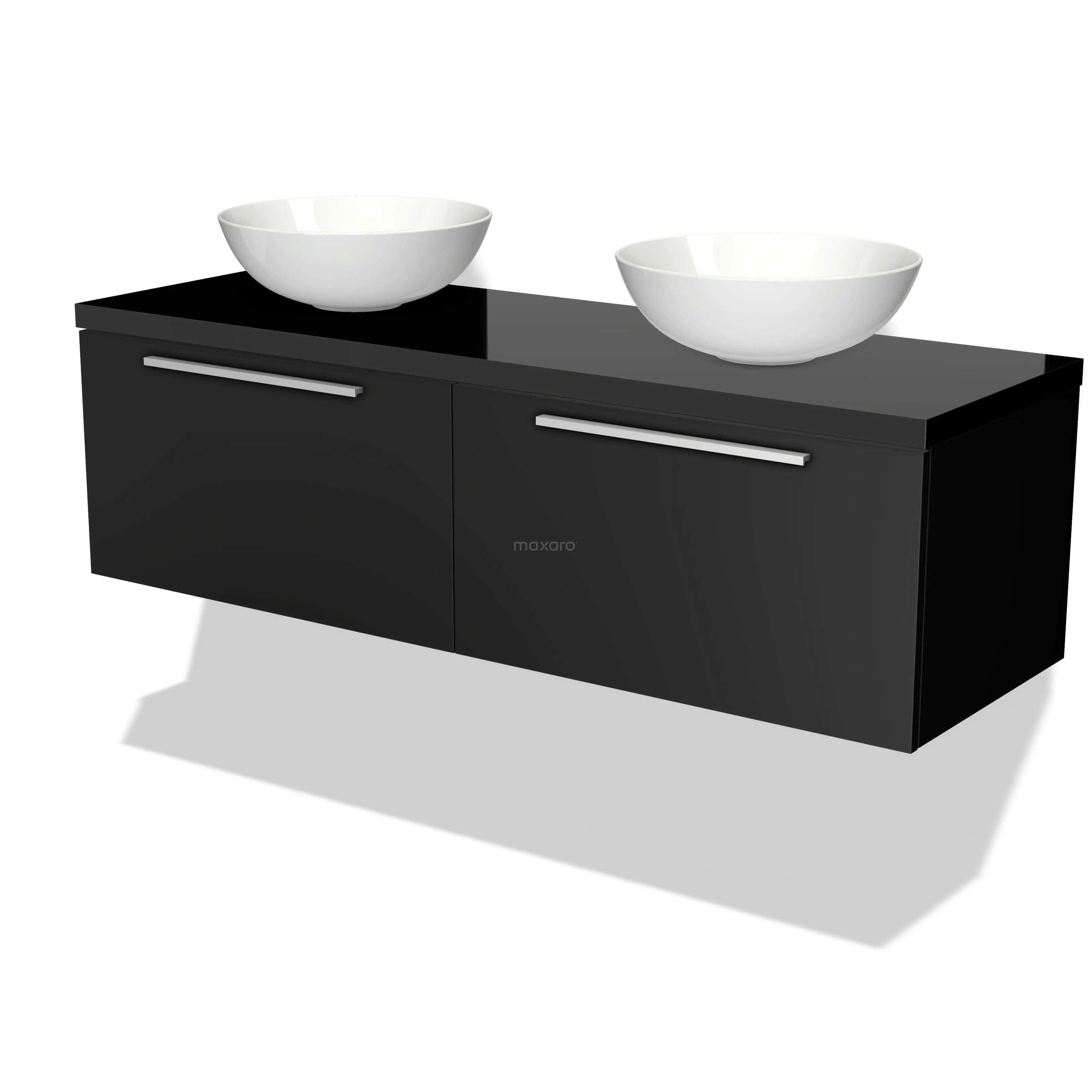 Waschtischunterschrank mit Konsole 140cm Modulo Plato Matt Schwarz 2 Schubladen Flach Hochglanz Schwarz Platte