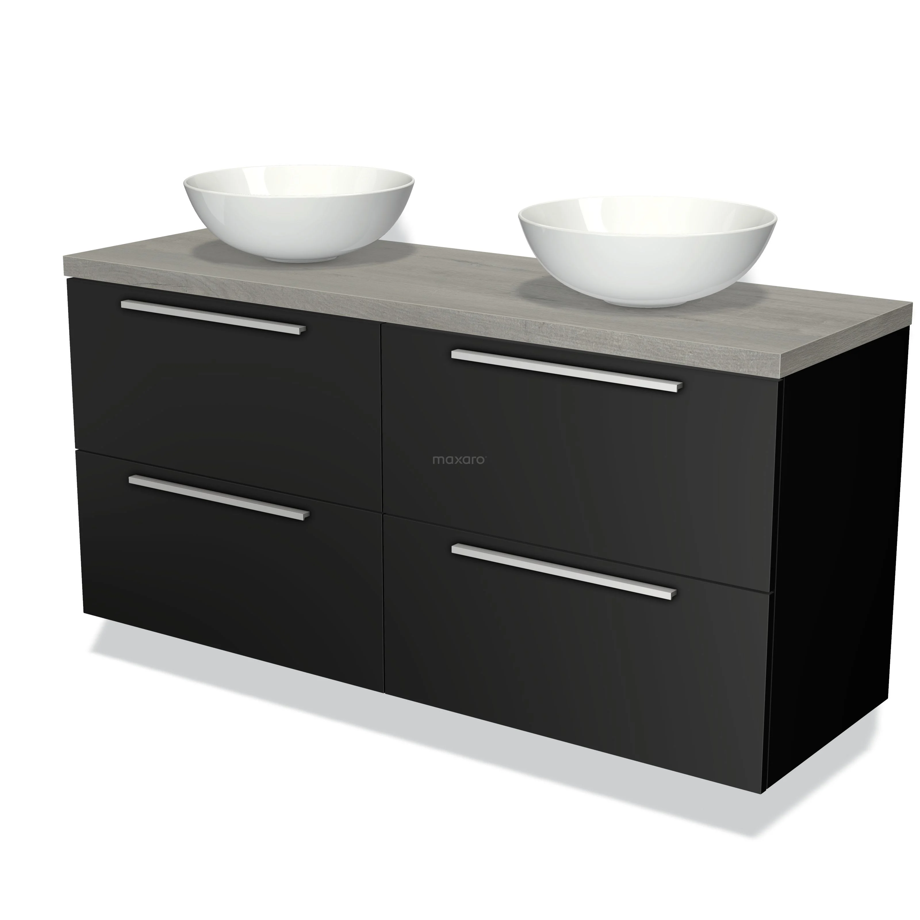 Waschtischunterschrank mit Konsole 140cm Modulo Plato Matt Schwarz 4 Schubladen Flach Graue Eiche Platte