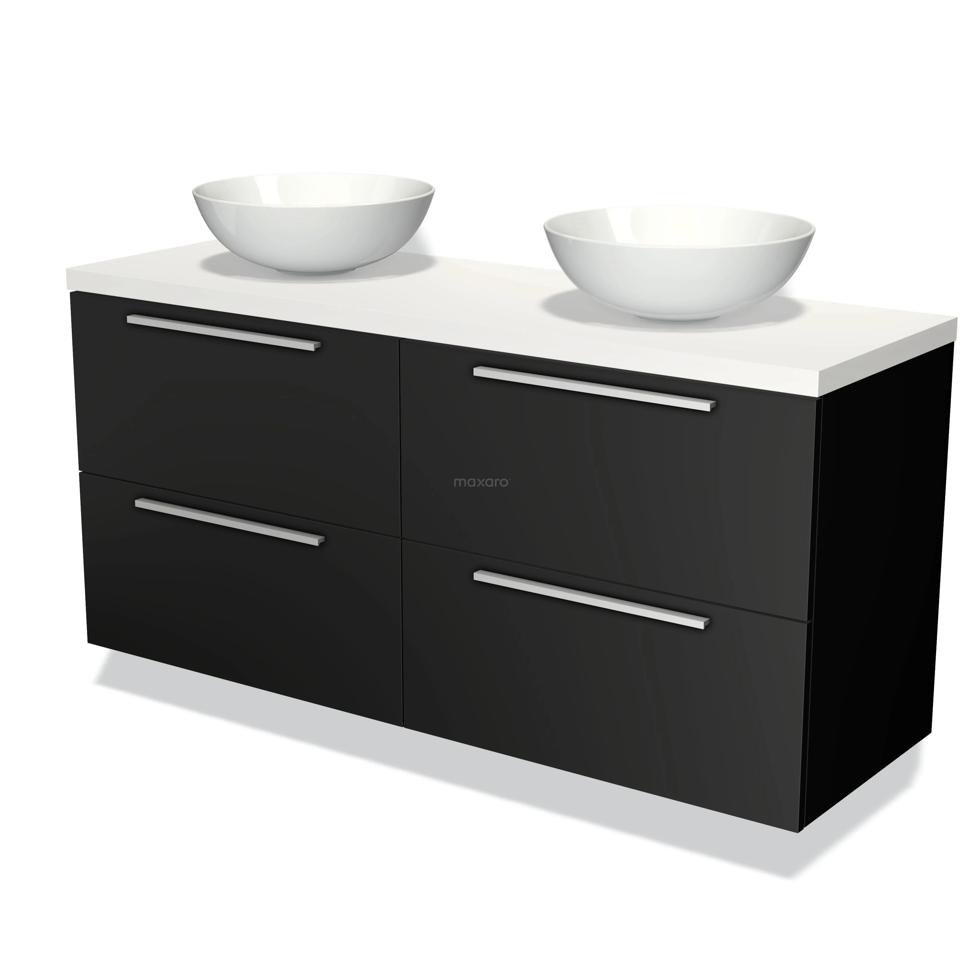 Waschtischunterschrank mit Konsole 140cm Modulo Plato Matt Schwarz 4 Schubladen Flach Matt Weiß Platte
