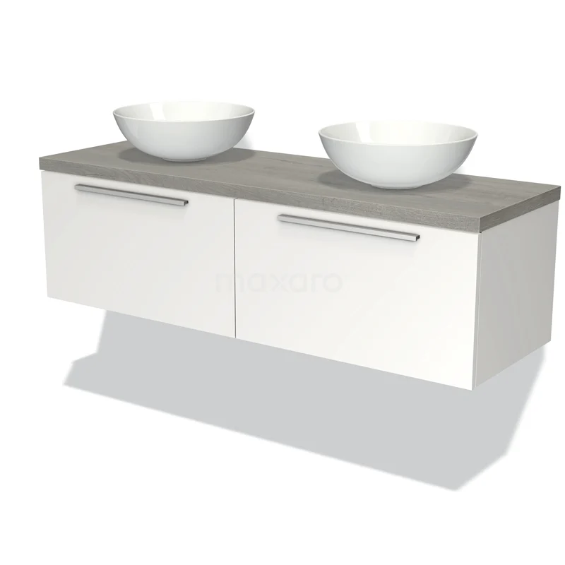 Waschtischunterschrank mit Konsole 140cm Modulo Plato Matt Weiß 2 Schubladen Flach Graue Eiche Platte