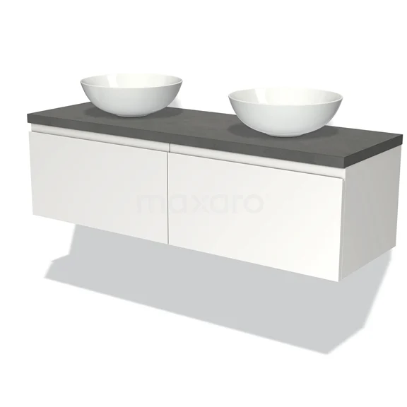 Waschtischunterschrank mit Konsole 140cm Modulo Plato Matt Weiß 2 Schubladen Grifflos Dunkelgrau Platte