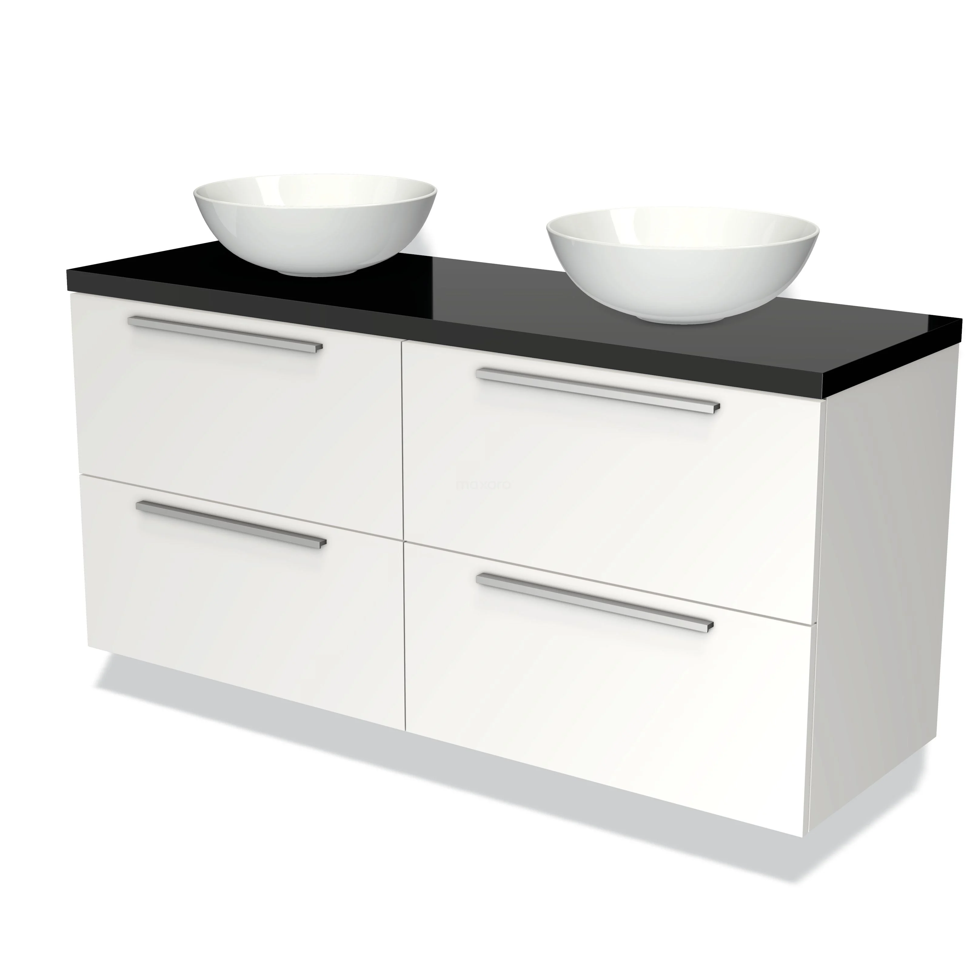 Waschtischunterschrank mit Konsole 140cm Modulo Plato Matt Weiß 4 Schubladen Flach Hochglanz Schwarz Platte