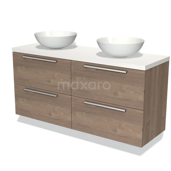 Waschtischunterschrank mit Konsole 140cm Modulo Plato Mittelbraune Eiche 4 Schubladen Flach Matt Weiß Platte