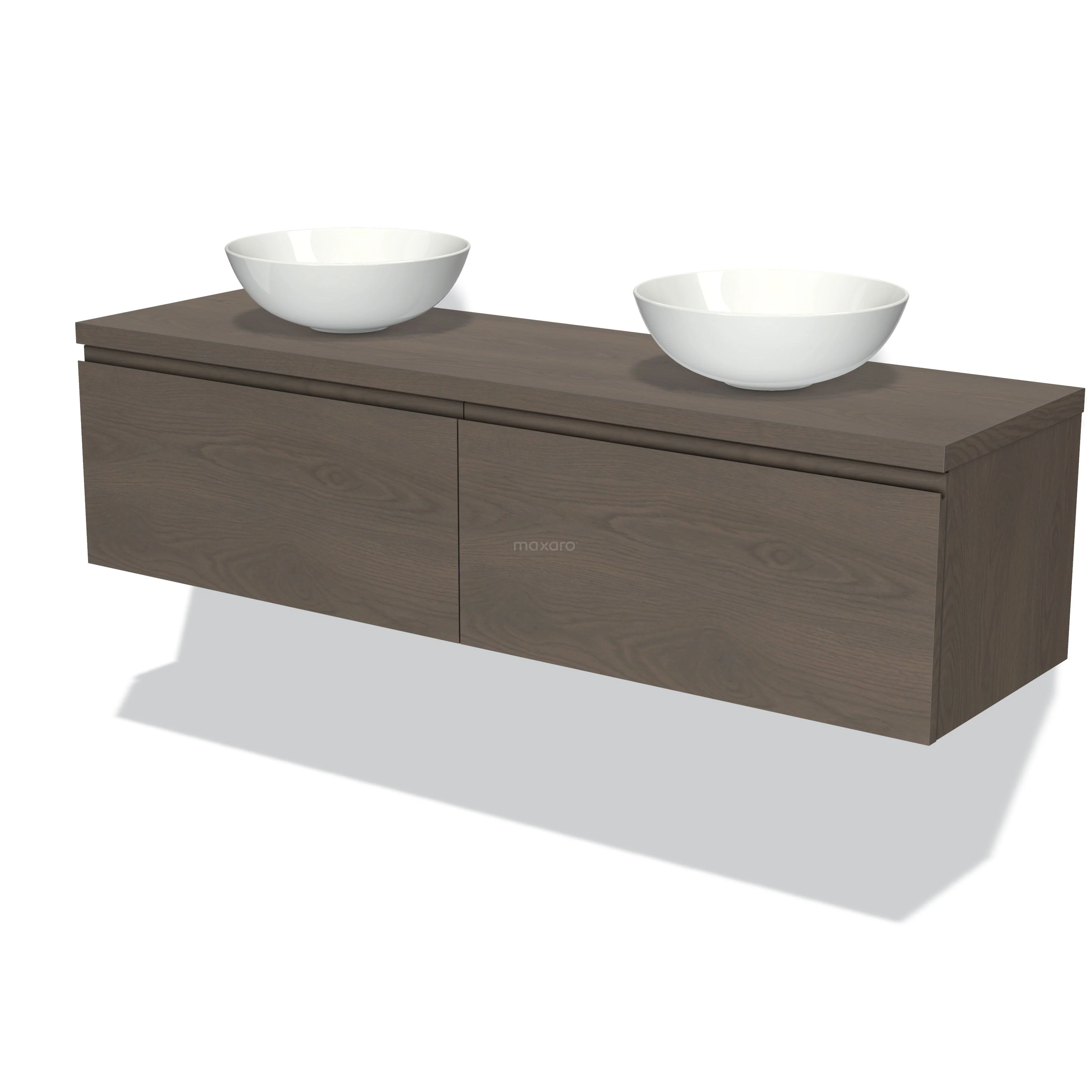 Waschtischunterschrank mit Konsole 160cm Modulo Plato dunkelbraune Eiche 2 Schubladen grifflos