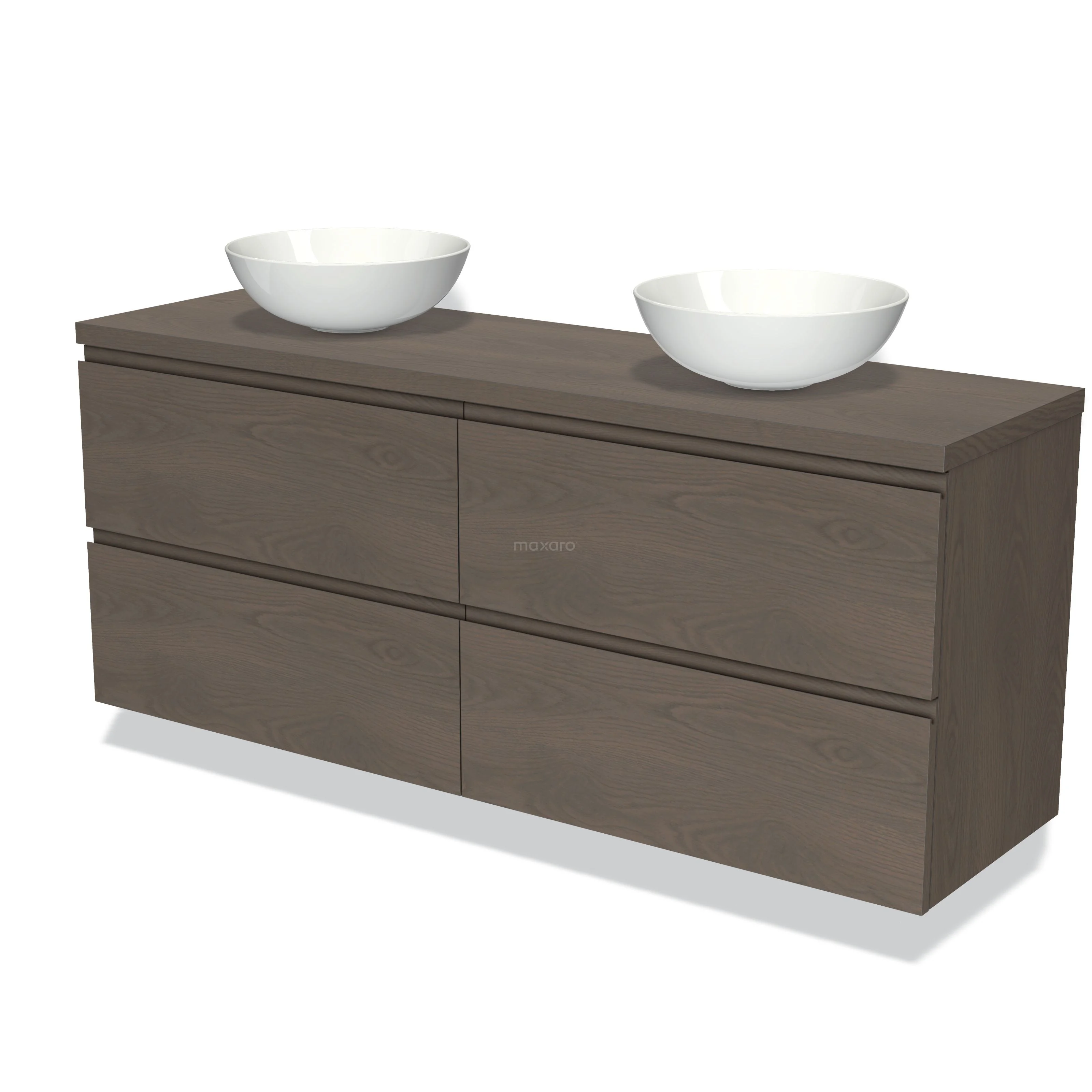 Waschtischunterschrank mit Konsole 160cm Modulo Plato dunkelbraune Eiche 4 Schubladen grifflos