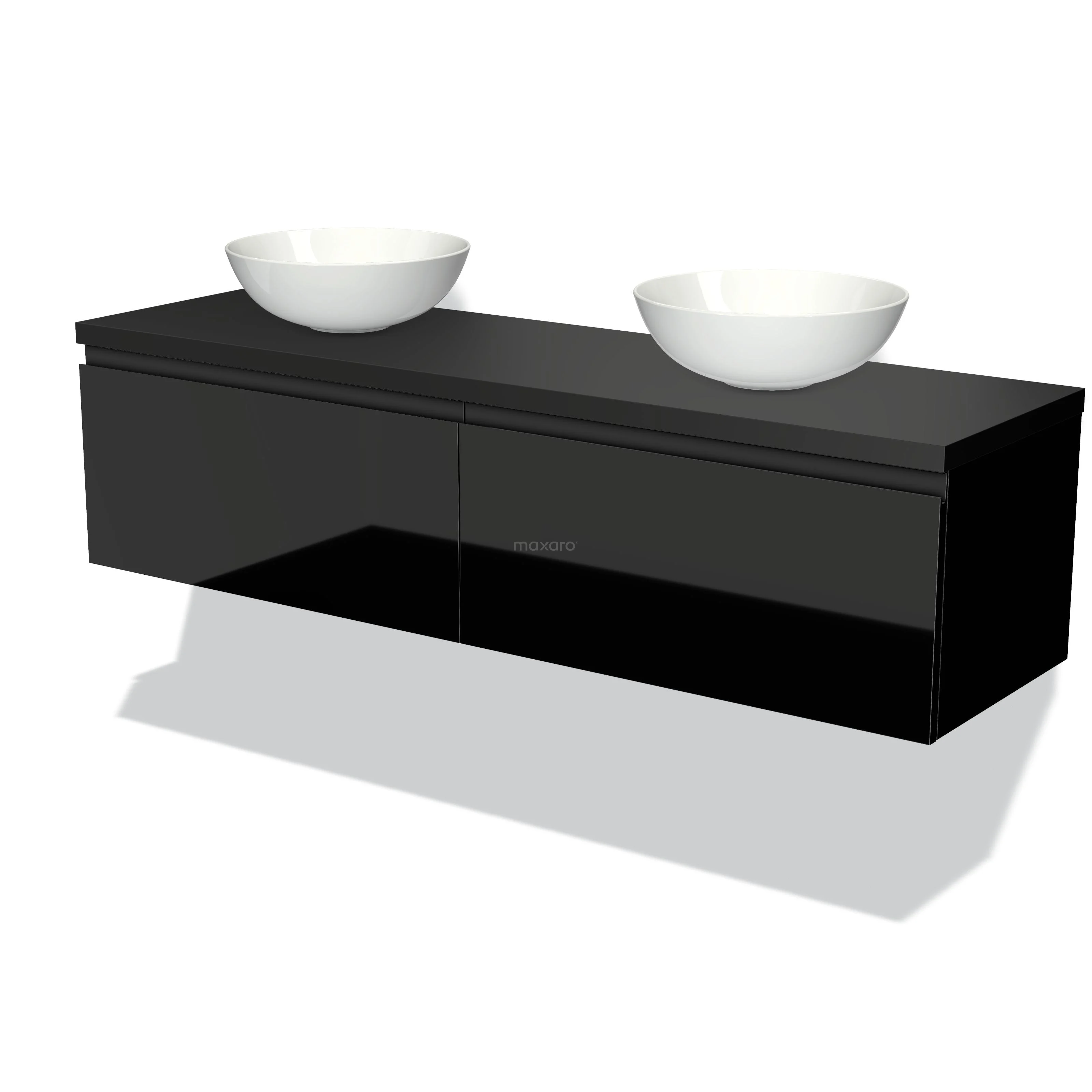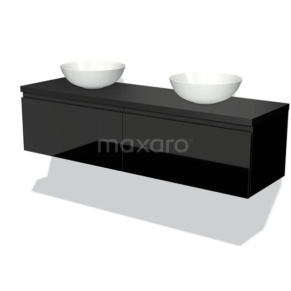 Waschtischunterschrank mit Konsole 160cm Modulo Plato Hochglanz Schwarz 2 Schubladen Grifflos Matt Schwarz Platte