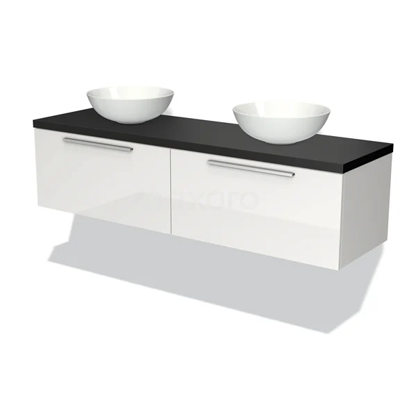 Waschtischunterschrank mit Konsole 160cm Modulo Plato Hochglanz Weiß 2 Schubladen Flach Matt Schwarz Platte