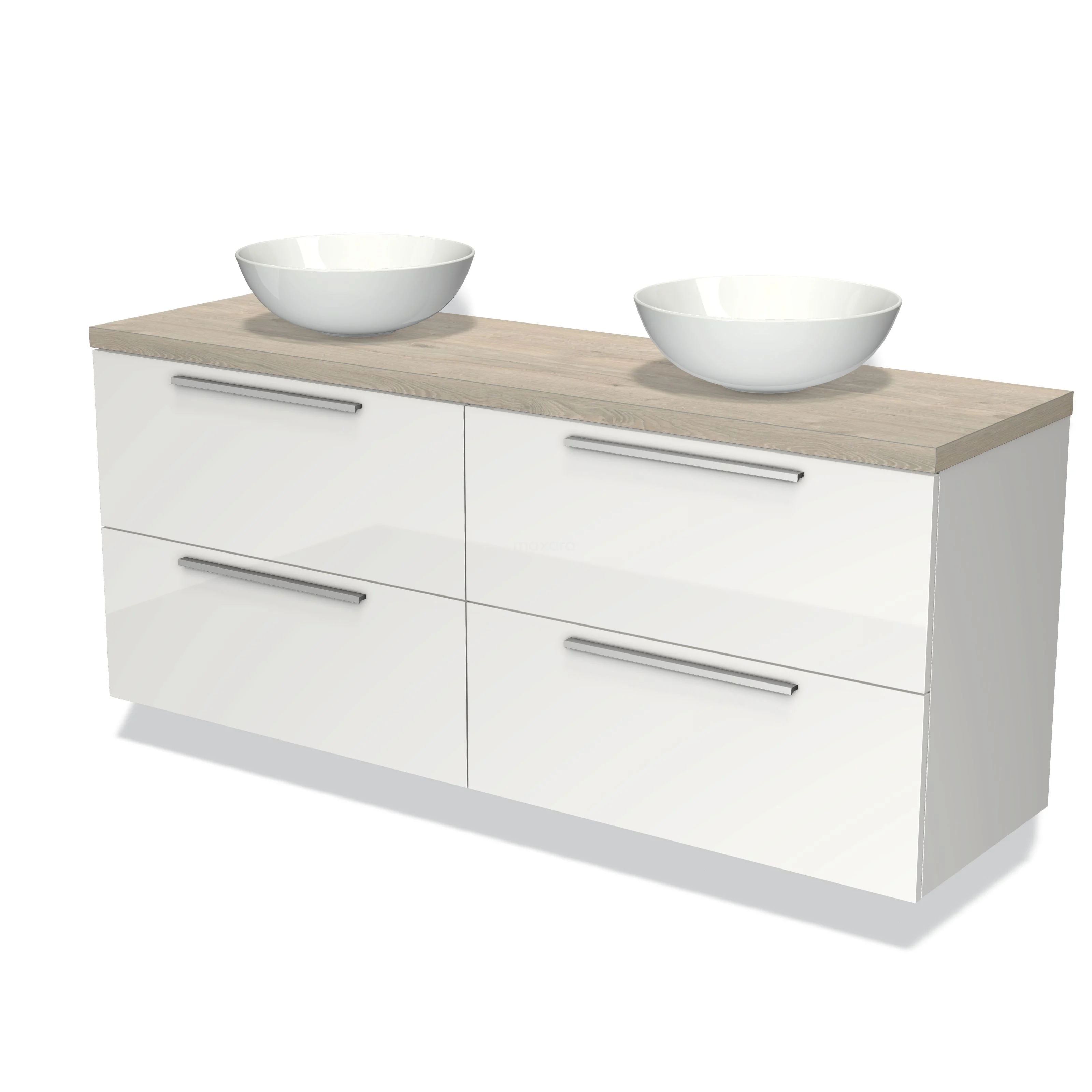 Waschtischunterschrank mit Konsole 160cm Modulo Plato Hochglanz Weiß 4 Schubladen Flach Hellgraue Eiche Platte