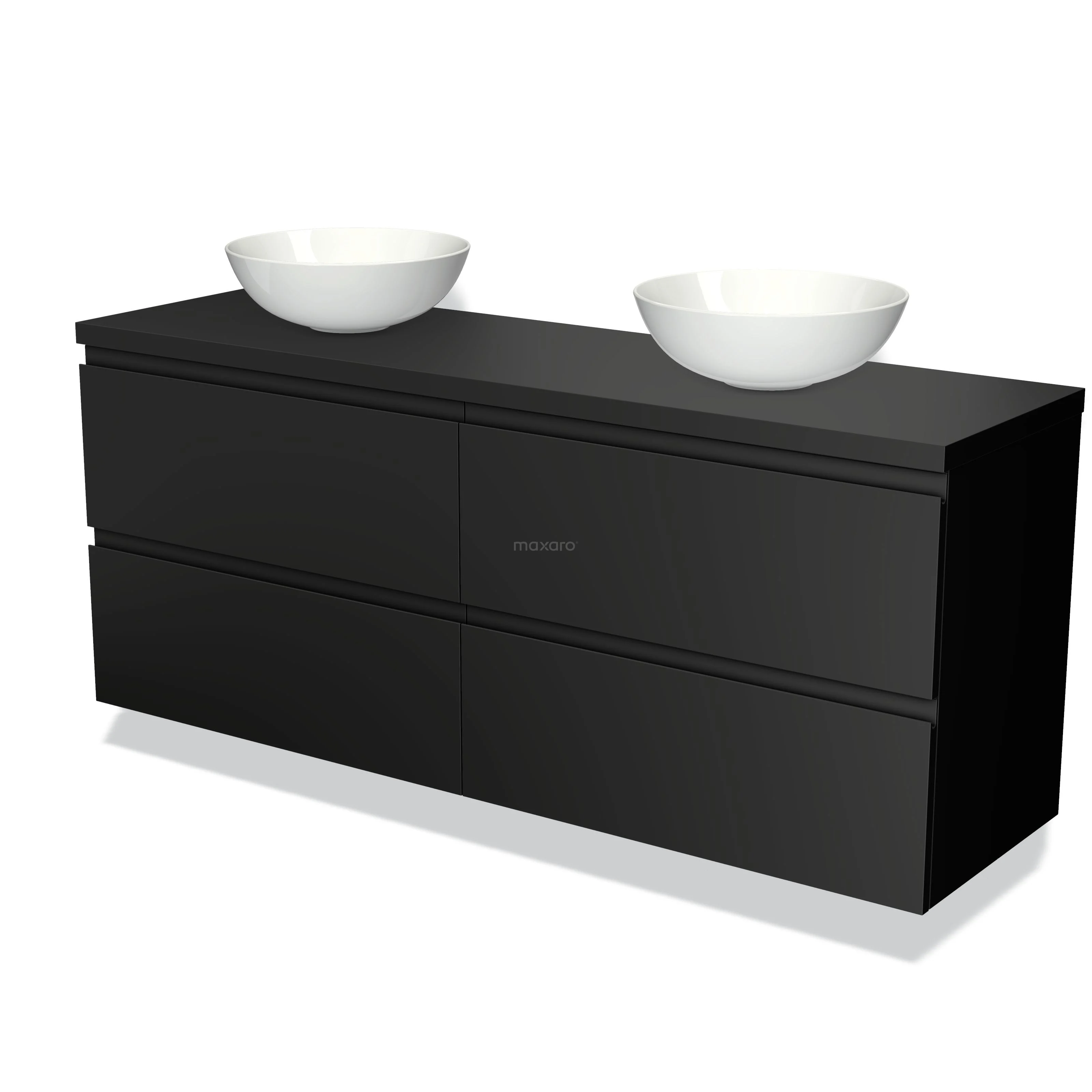 Waschtischunterschrank mit Konsole 160cm Modulo Plato Matt Schwarz 4 Schubladen Grifflos