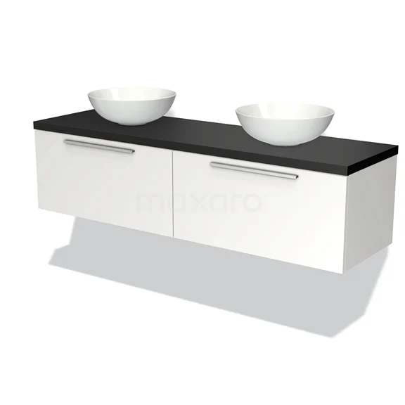 Waschtischunterschrank mit Konsole 160cm Modulo Plato Matt Weiß 2 Schubladen Flach Matt Schwarz Platte