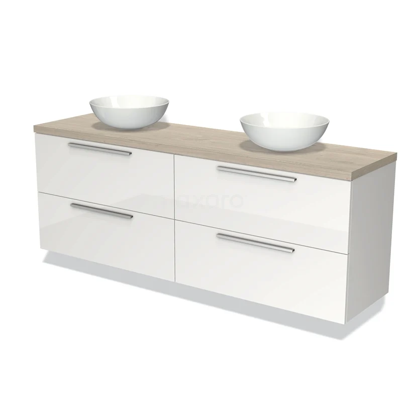 Waschtischunterschrank mit Konsole 180cm Modulo Plato Hochglanz Weiß 4 Schubladen Flach Hellgraue Eiche Platte