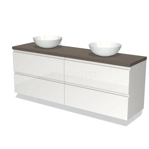 Waschtischunterschrank mit Konsole 180cm Modulo Plato Hochglanz Weiß 4 Schubladen Grifflos dunkelbraune Eiche Platte