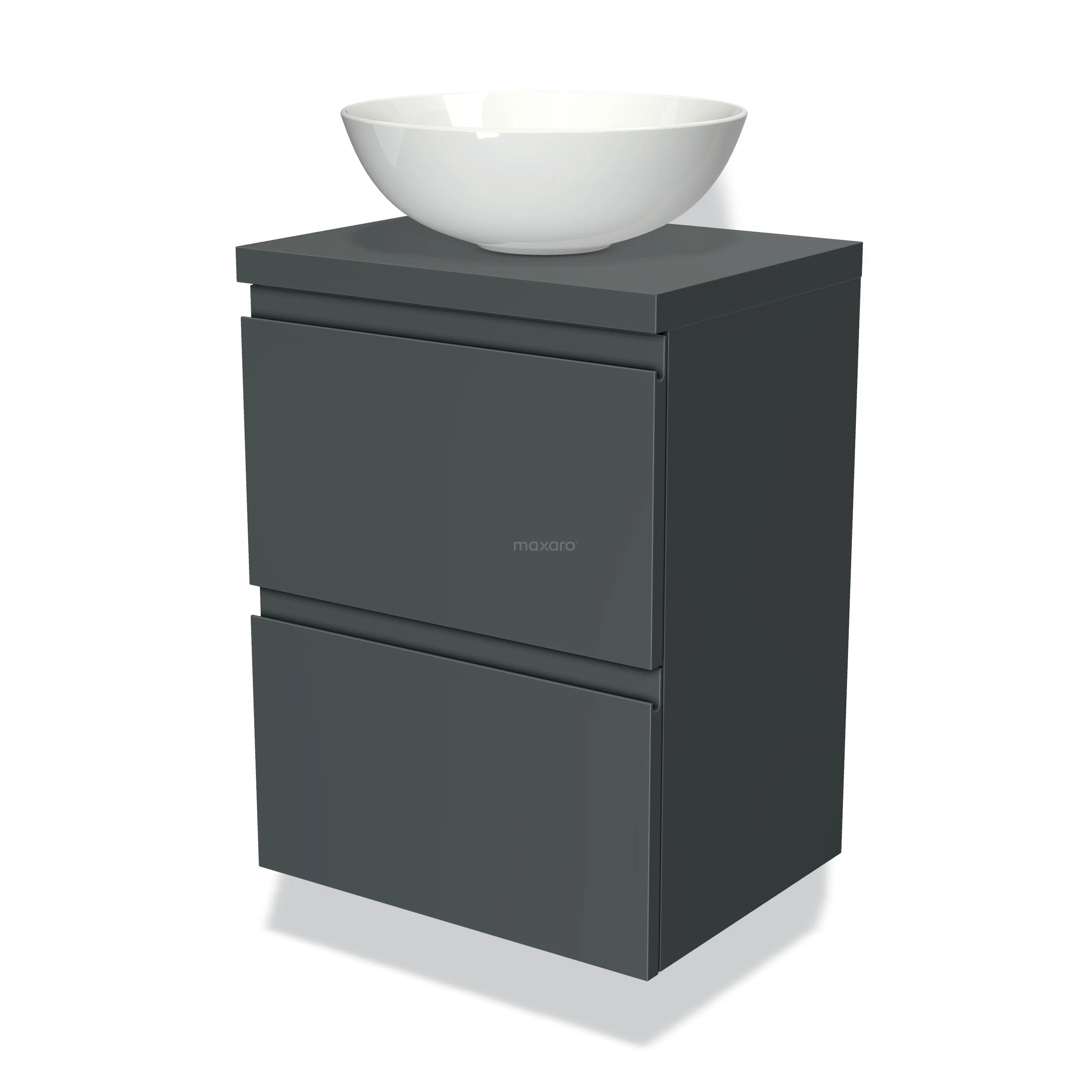 Waschtischunterschrank mit Konsole 50cm Modulo Plato Slim Dunkelgrau 2 Schubladen Grifflos