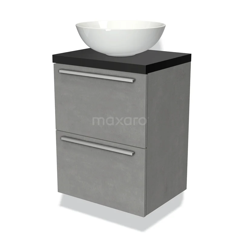 Waschtischunterschrank mit Konsole 50cm Modulo Plato Slim hellgrauer Beton 2 Schubladen Flach