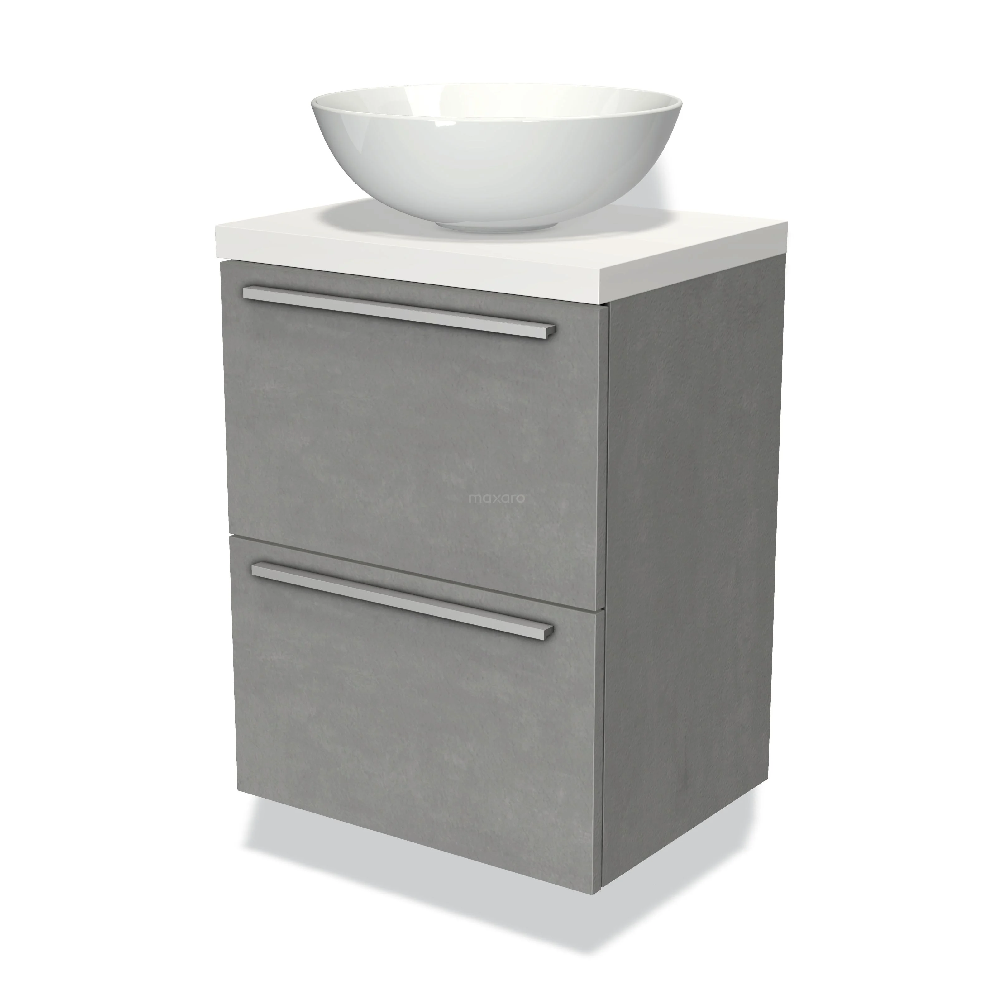 Waschtischunterschrank mit Konsole 50cm Modulo Plato Slim hellgrauer Beton 2 Schubladen Flach