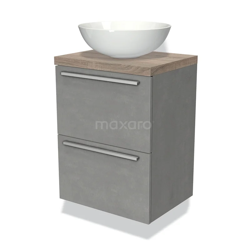 Waschtischunterschrank mit Konsole 50cm Modulo Plato Slim hellgrauer Beton 2 Schubladen Flach