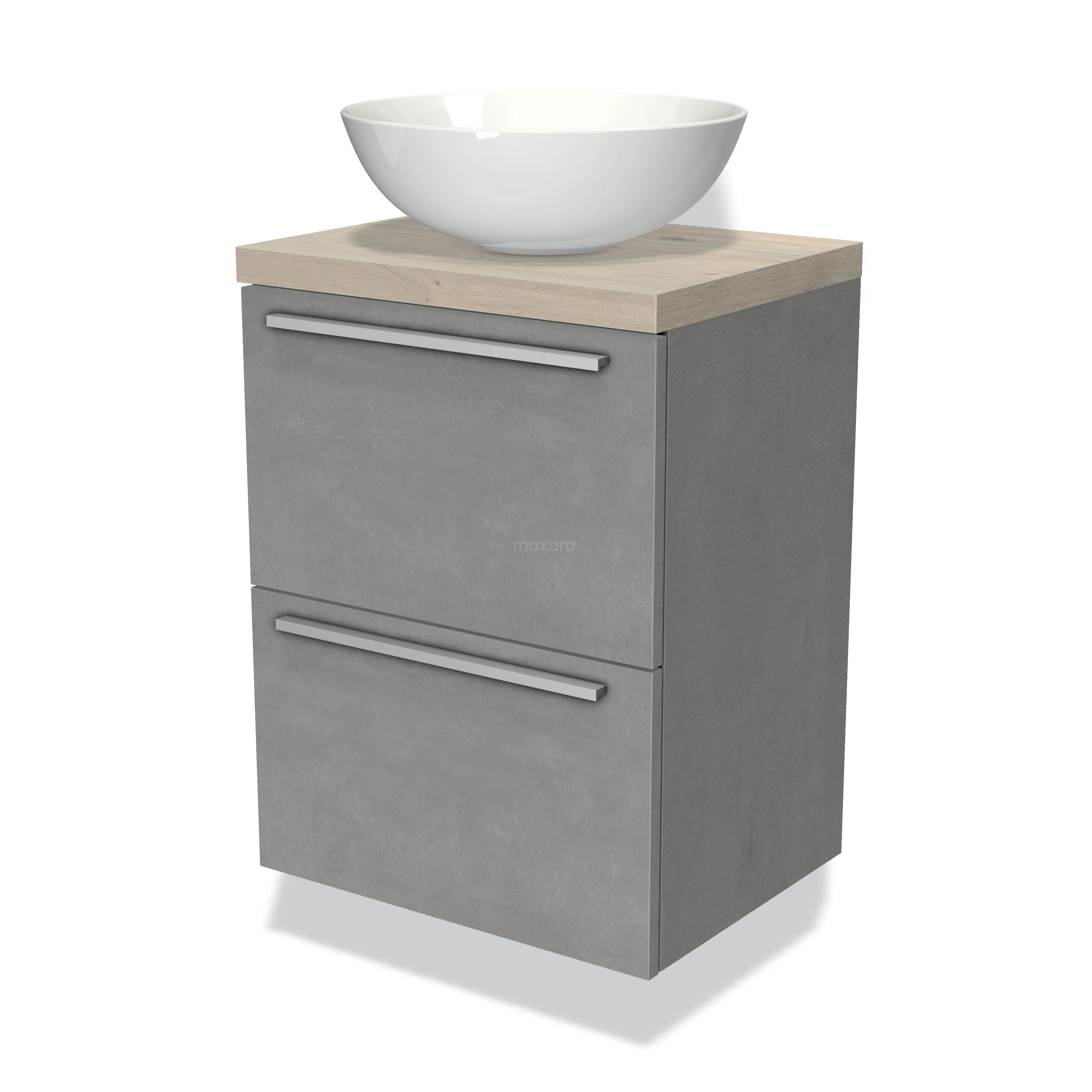 Waschtischunterschrank mit Konsole 50cm Modulo Plato Slim hellgrauer Beton 2 Schubladen Flach